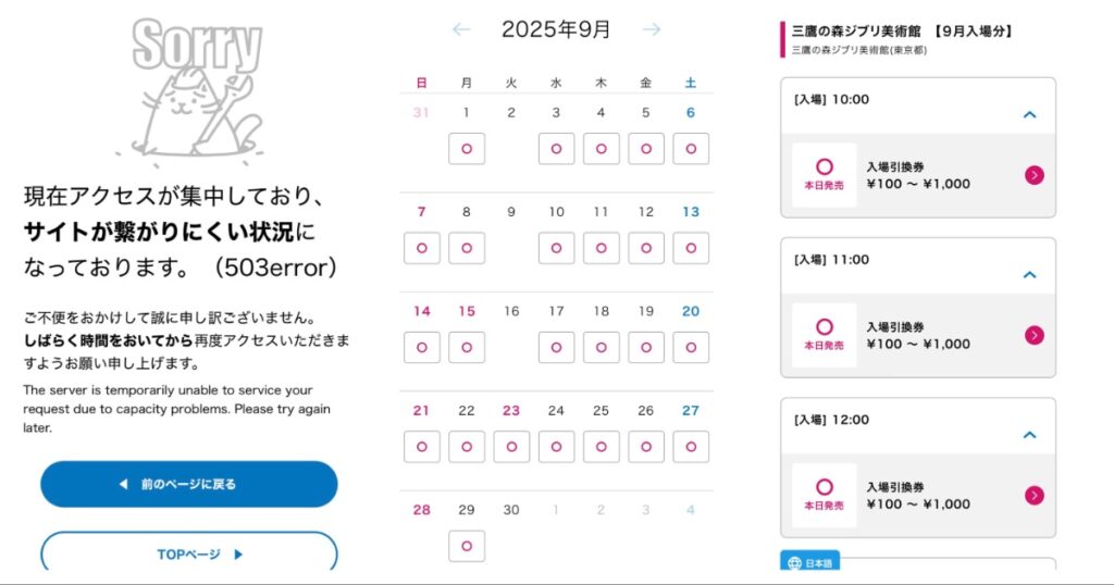 開賣日:固定每月10號+日本時間早上10:00 開賣次月的門票(ex:7/10 販售整個8月的營業日門票)