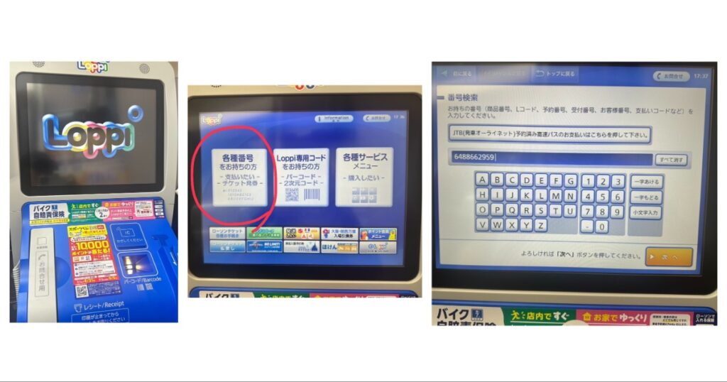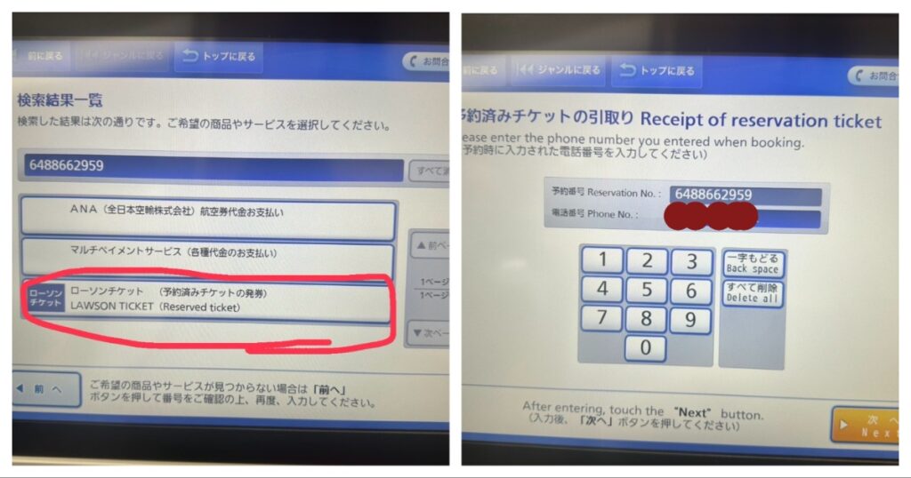 Loppi機台螢幕選擇各種番號-輸入預約號碼做查詢