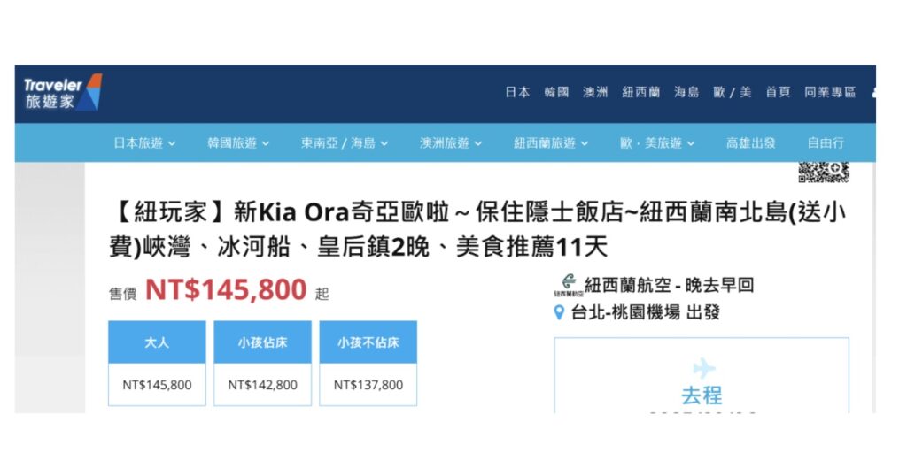 左半邊的篩選器可以一覽在易遊網上架的自有紐西蘭產品出團旅行社:旅遊家旅行社、尊榮假期、雄獅旅遊、可樂旅遊、旅天下、鳳凰旅遊etc